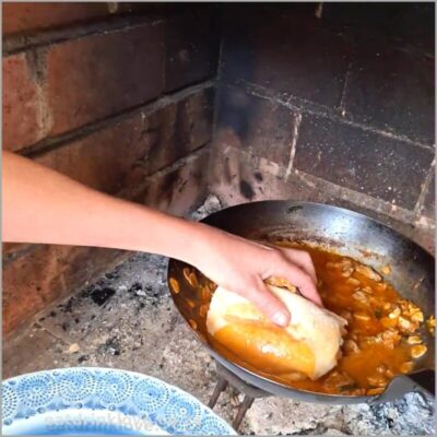 This recipe serves 4. I made this dish over an open fire, but off course it can be made on a stove.