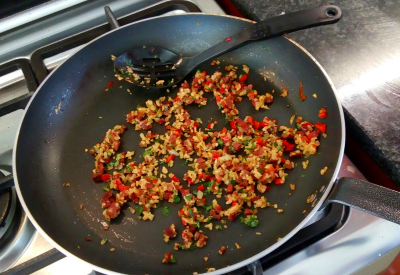 Frying chorizo and vegetables